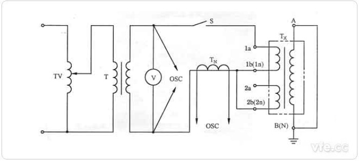 TV——調(diào)壓器;TN——測量用標準電流互感器;T——升壓變壓器;TX——被試互感器;C1、C2——電容分壓器;A\B(N)——一次繞組端子;