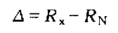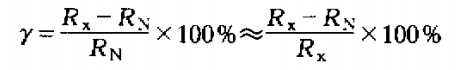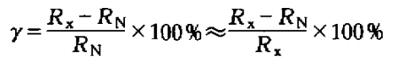 2)用絕對誤差Δ與被檢表讀數(shù)值Rx之比的相對誤差: