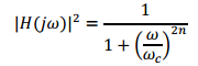 其中,n為濾波器的階數(shù),為低通濾波器的截止頻率。該濾波器具有一些特殊的性質: